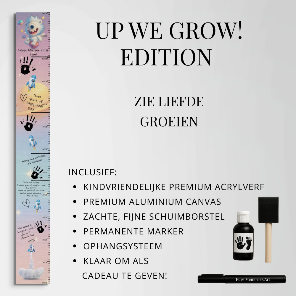 UP WE GROW! COLLECTIONDE UP WE GROW! EDITION — EEN PRACHTIG PREMIUM ALUMINIUM CANVAS, KLAAR OM LENGTE, HANDAFDRUKKEN EN KOSTBARE HERINNERINGEN VAST TE LEGGEN.