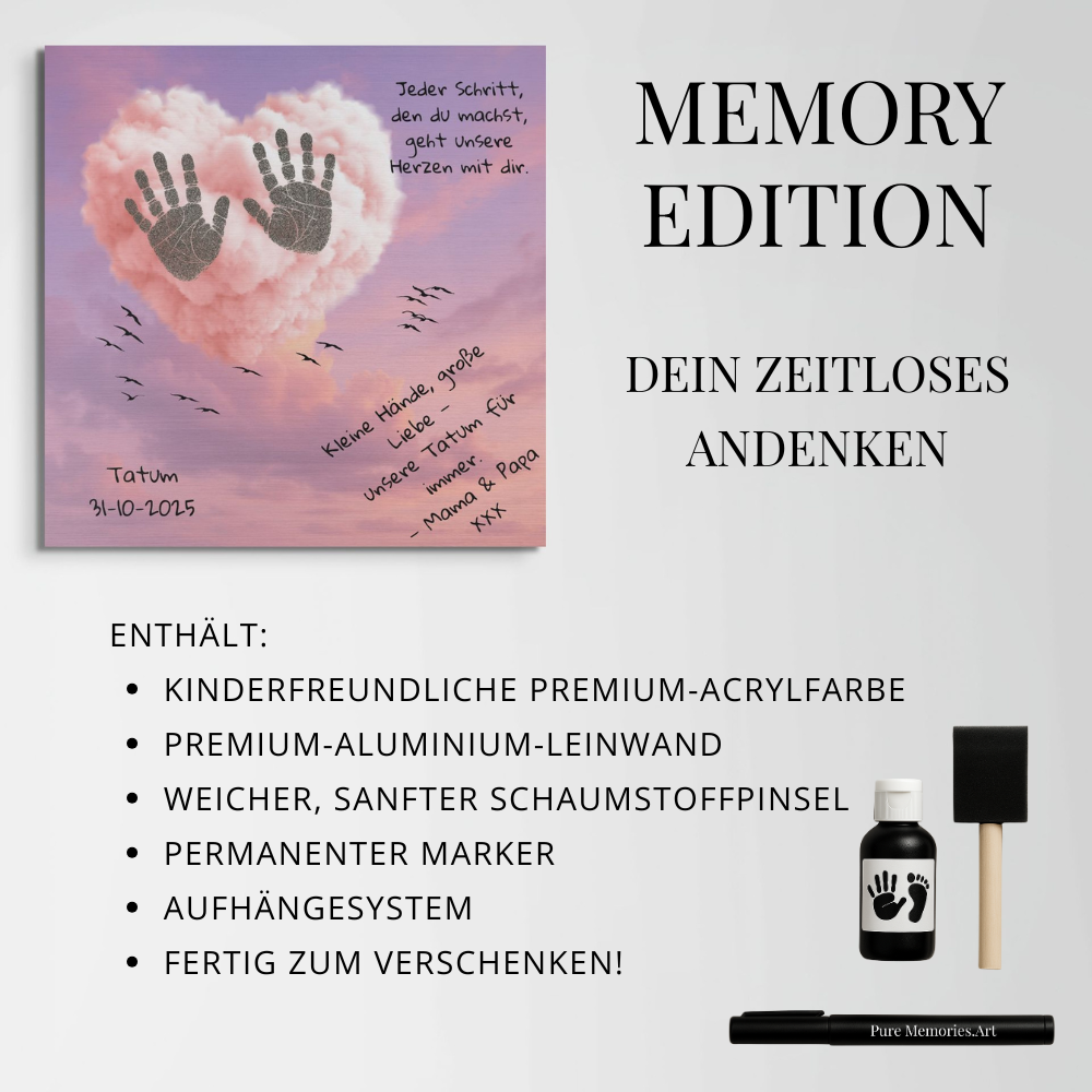 THE MEMORY COLLECTIONENTDECKE DIE MEMORY EDITION — EINE WUNDERSCHÖNE LEINWAND AUS PREMIUM-ALUMINIUM. FÜGE DEINE PERSÖNLICHE NOTE HINZU UND VERWANDLE MOMENTE IN ERINNERUNGEN.