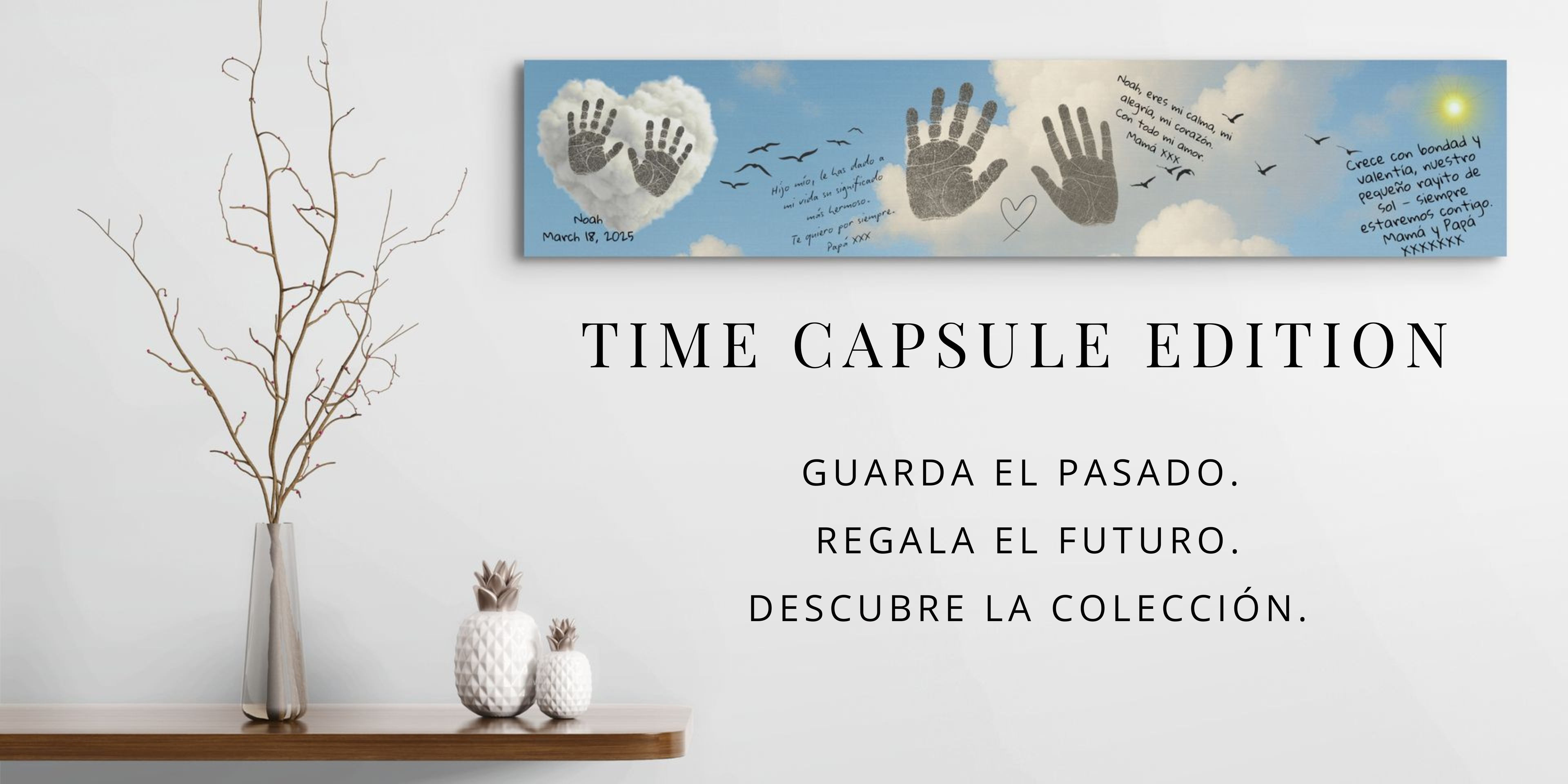 CAPTURA TU HISTORIA CON LA TIME CAPSULE EDITION — REGÁLALO COMO UN HERMOSO KIT, O CRÉALO TÚ MISMO Y REGALA LA OBRA TERMINADA, SÉLLELA CON NUESTRO RE-PACK STICKER Y LISTA PARA SER ENVIADA.
