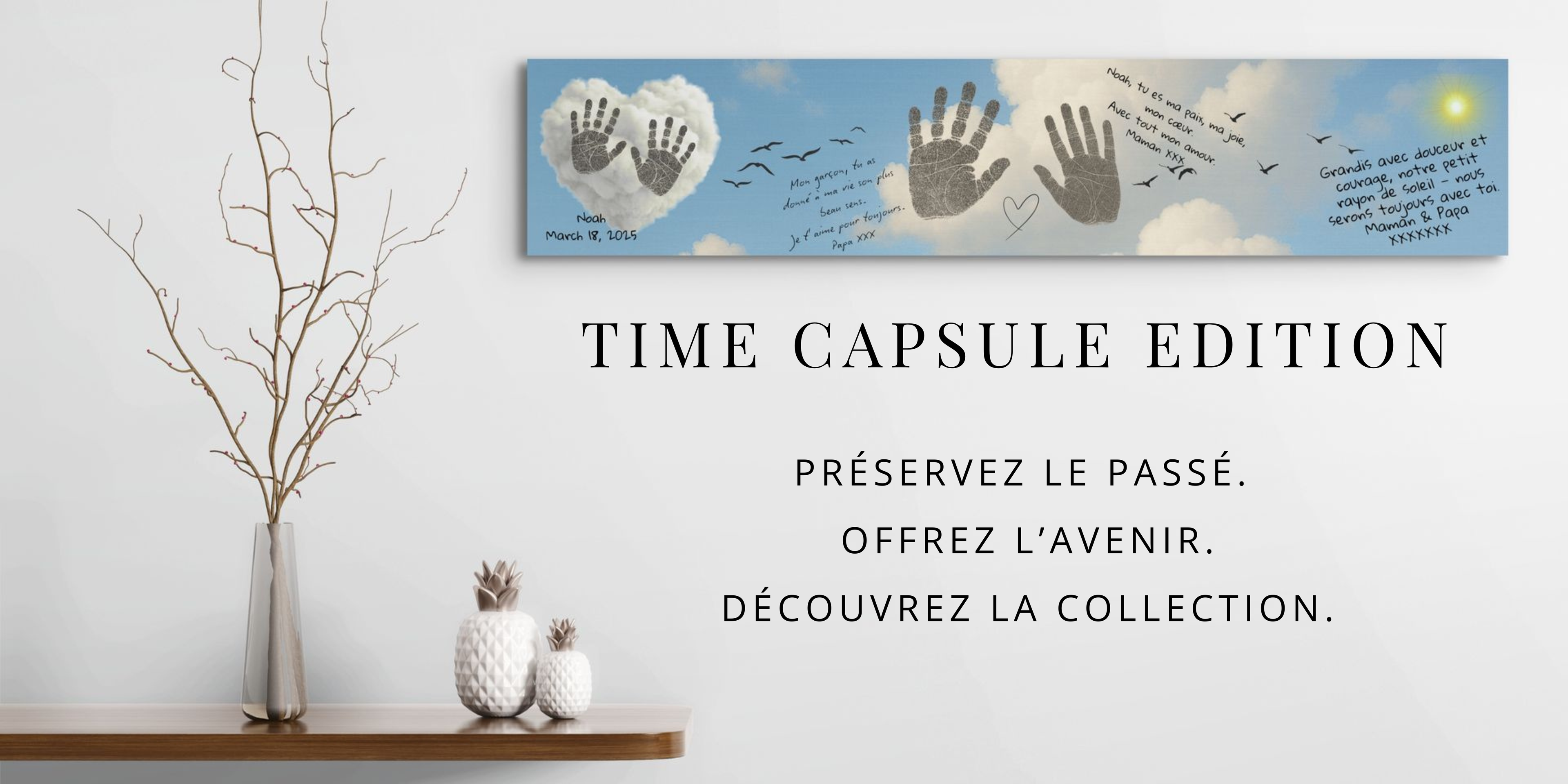CAPTUREZ VOTRE HISTOIRE AVEC LA TIME CAPSULE EDITION — OFFREZ-LE COMME UN BEAU KIT, OU CRÉEZ-LE VOUS-MÊME ET OFFREZ L’ŒUVRE TERMINÉE, SCELLÉE AVEC NOTRE RE-PACK STICKER ET PRÊTE À ÊTRE ENVOYÉE.
